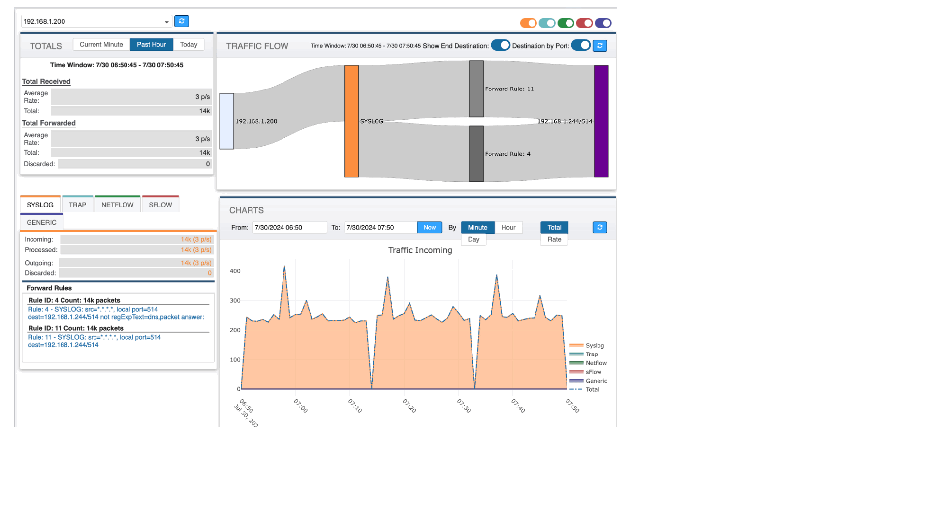 - Effortlessly build syslog pipelines by filtering with simple word searghes.